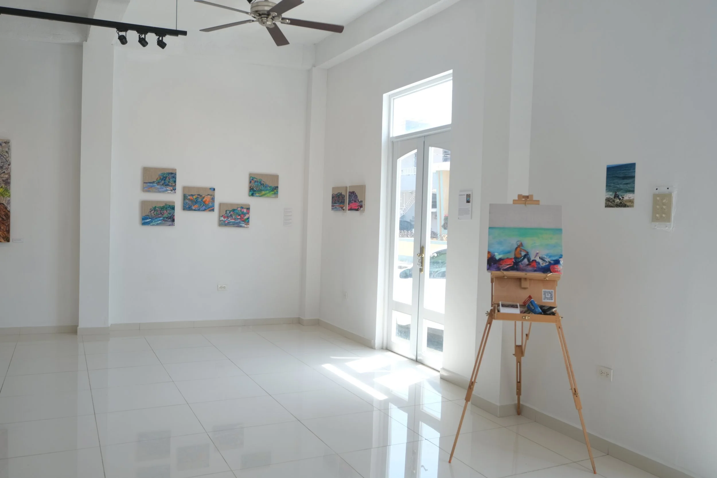 Isla de atardeceres encantados, con vista al silencio del Atlántico, posee un ecosistema variado que cambia abruptamente de desierto a bosque subtropical, y en ocasiones recibe unos vientos intensos, provenientes del Sahara. Mis pinturas capturan la serenidad, son abstracciones de vistas panorámicas, la oscura realidad de los locales y la sombra bajo la cual vive el panorama canario, en relación a la península.